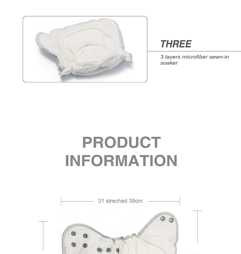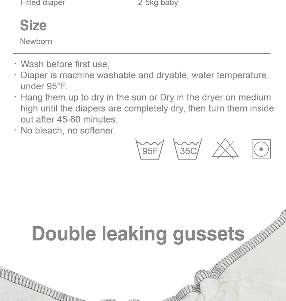 · Diaper is machine washable and dryable, water temperature under 30 °C.